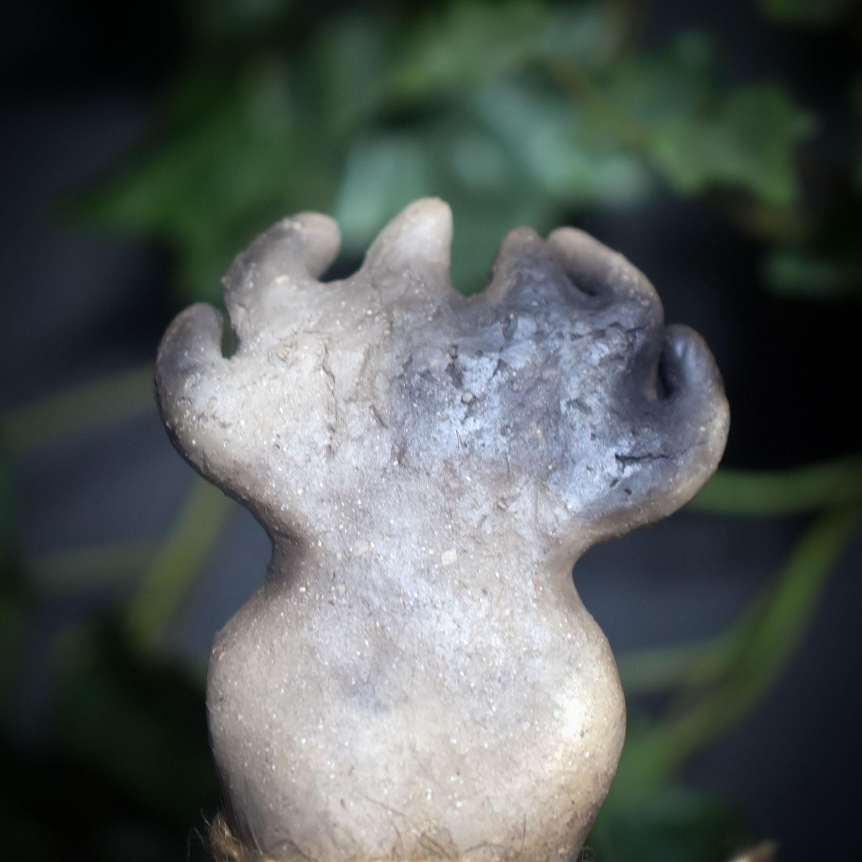 Embark on a powerful journey through Yule with this handcrafted ritual staff made from traditional smoke-fired craftsmanship. The stag, your spiritual power animal, sits enthroned as a clay stag's head on a unique, twisted wooden branch. It represents strength, freedom, protection, and spiritual guidance—and connects you to the cycles of nature and your own inner wisdom.