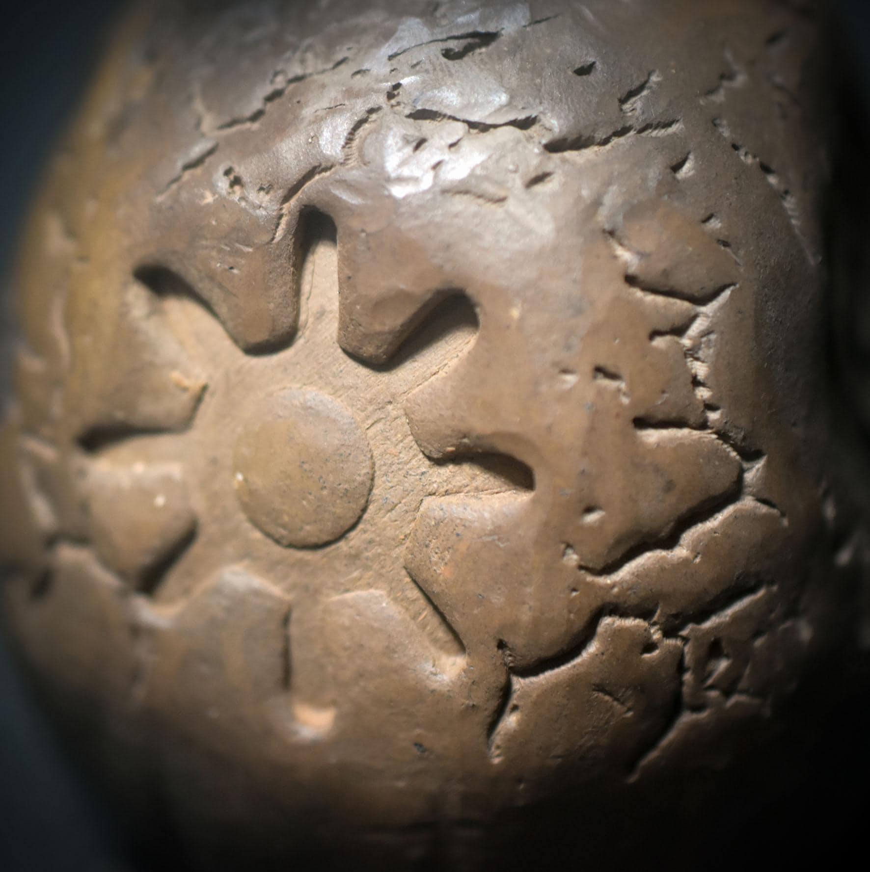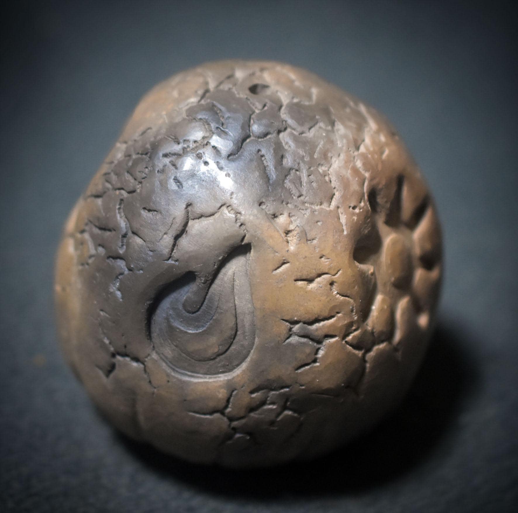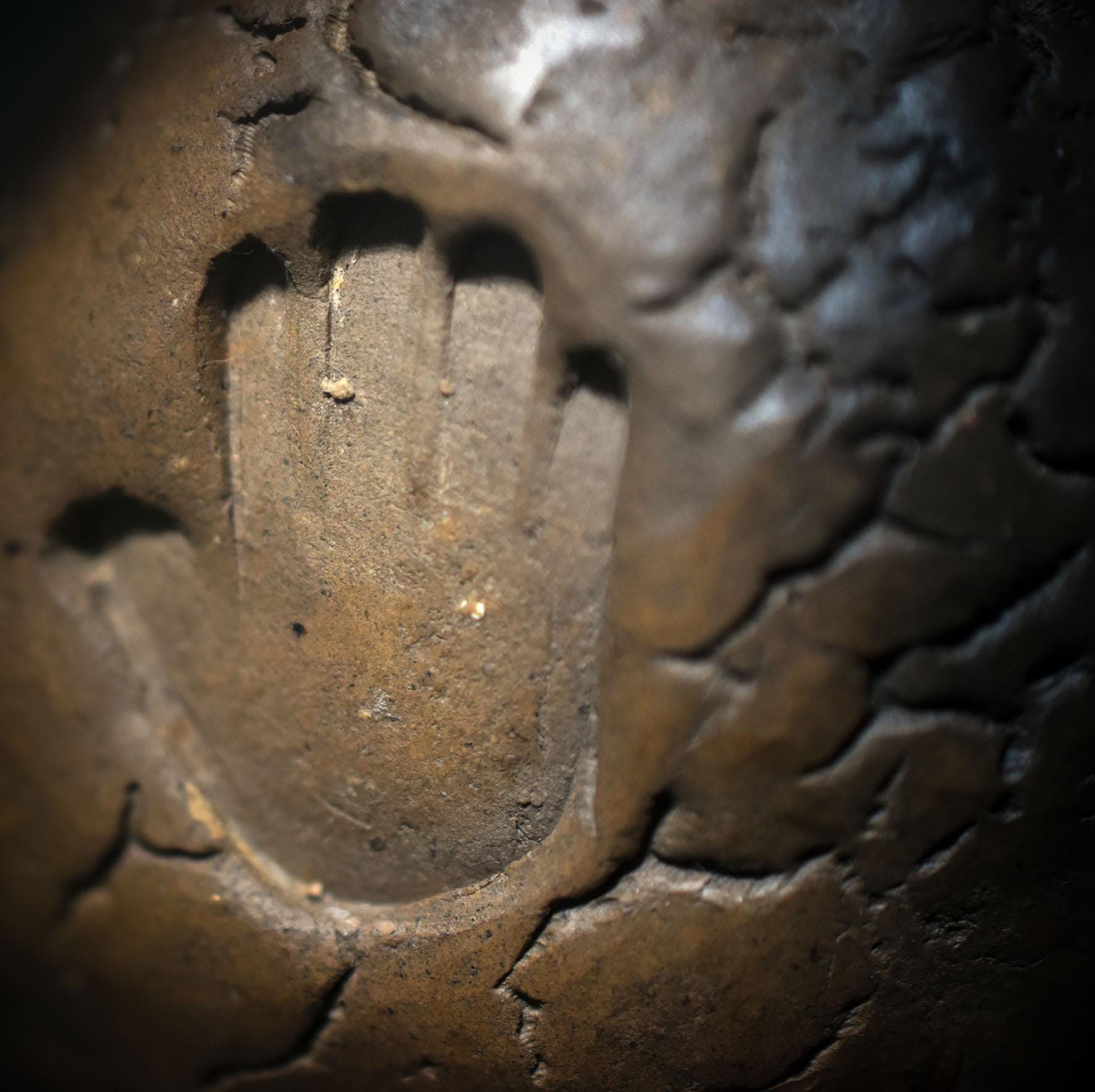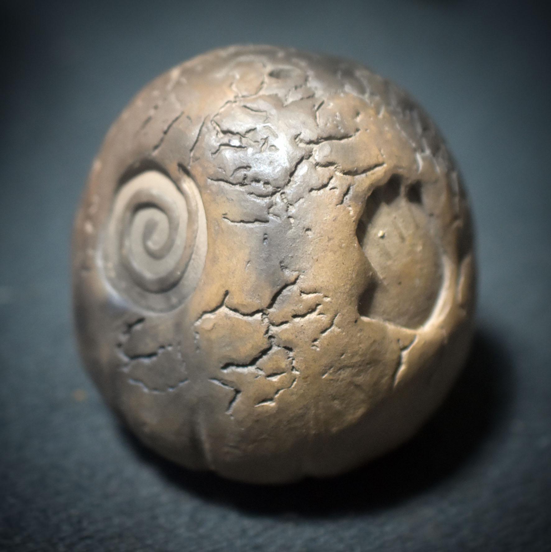 Each rattle is unique, marked by the flames and breath of the earth. Its sound embodies the spirit of the primal – raw, earthy, pure. The symbols of a hand, sun, flame, and spiral are deeply carved into the surface. They represent transformation, protection, vitality, and the eternal cycle of life.