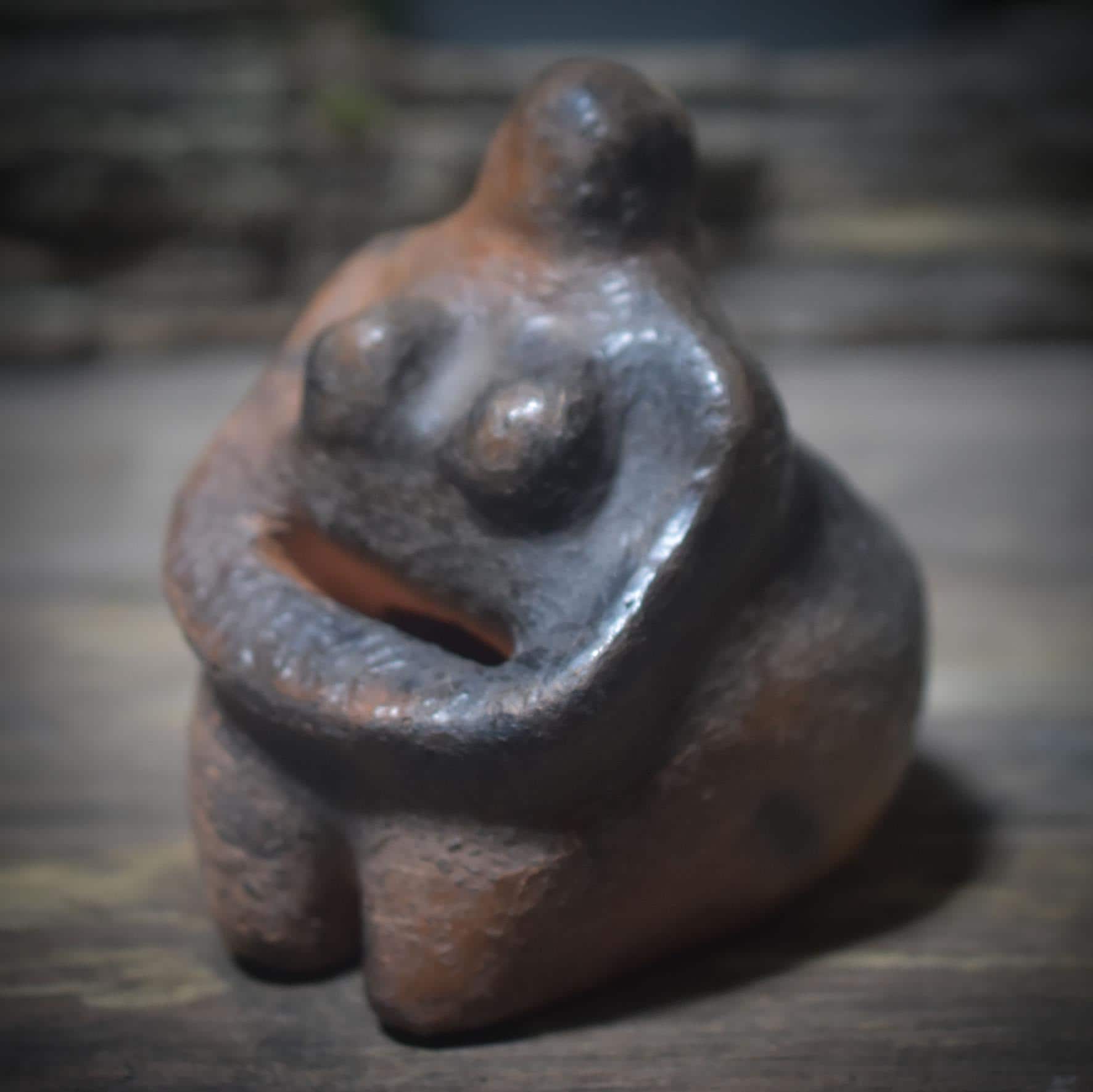 The Wish Keeper is a primal, matriarchal being made of clay—born of earth, smoke, and fire. She carries within her the power of the primal mother, who nourishes, preserves, and transforms. Her closed interior is a sacred space where everything you entrust to her remains safe—forever.