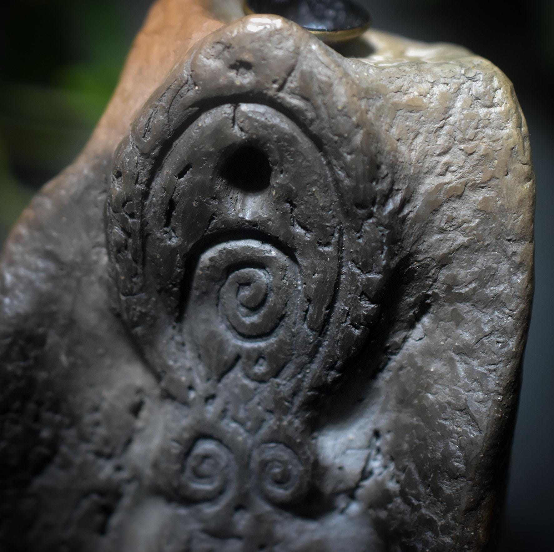 Each piece is lovingly handcrafted by me and is unique thanks to the smoke firing process. Natural color and texture make each figure unique. It's a perfect companion for your rituals, a gift for the winter solstice, or a spiritual centerpiece in your home.