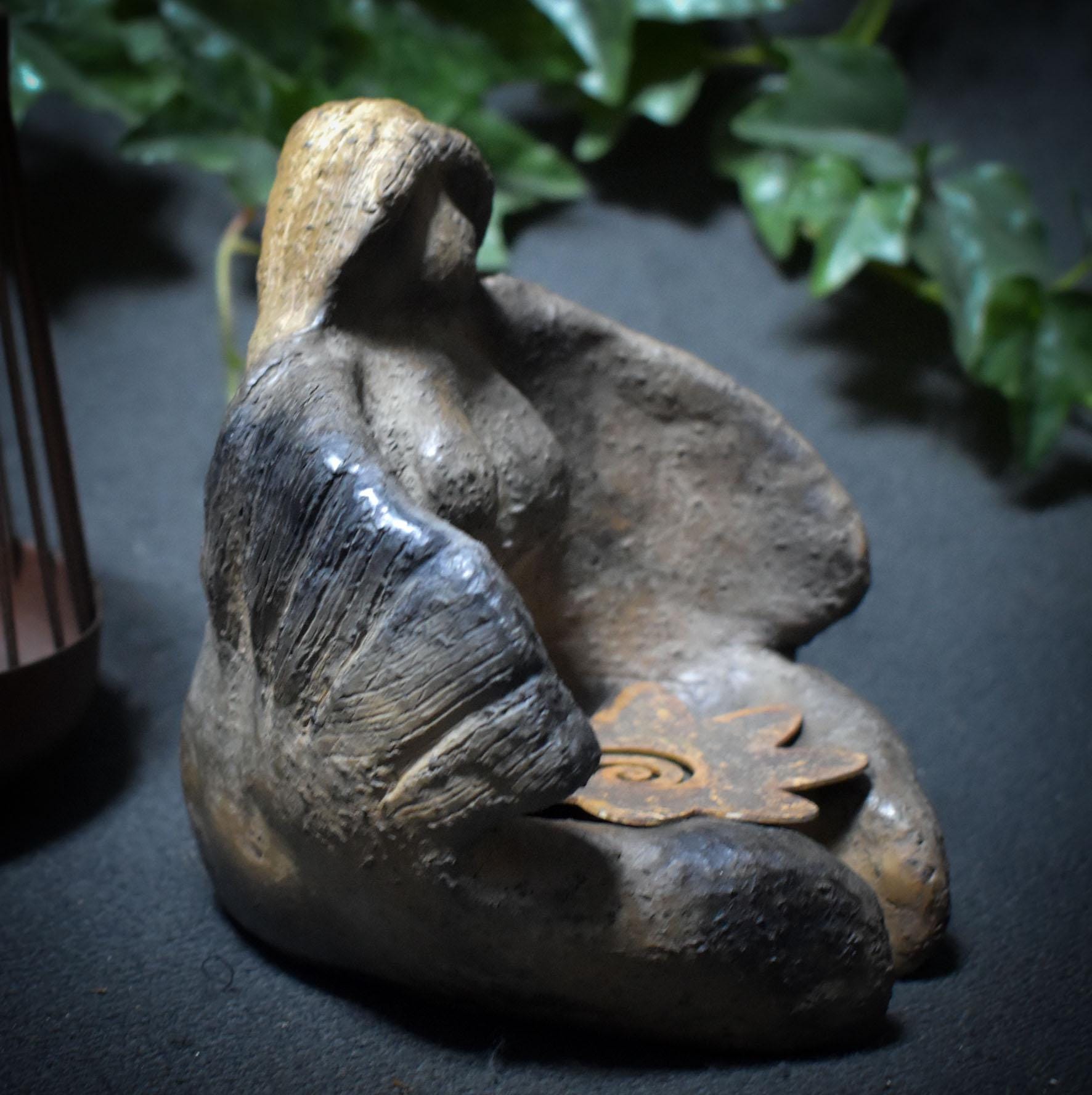 Archaic clay figure made from traditional smoke-fired art – symbol of life, change & femininity