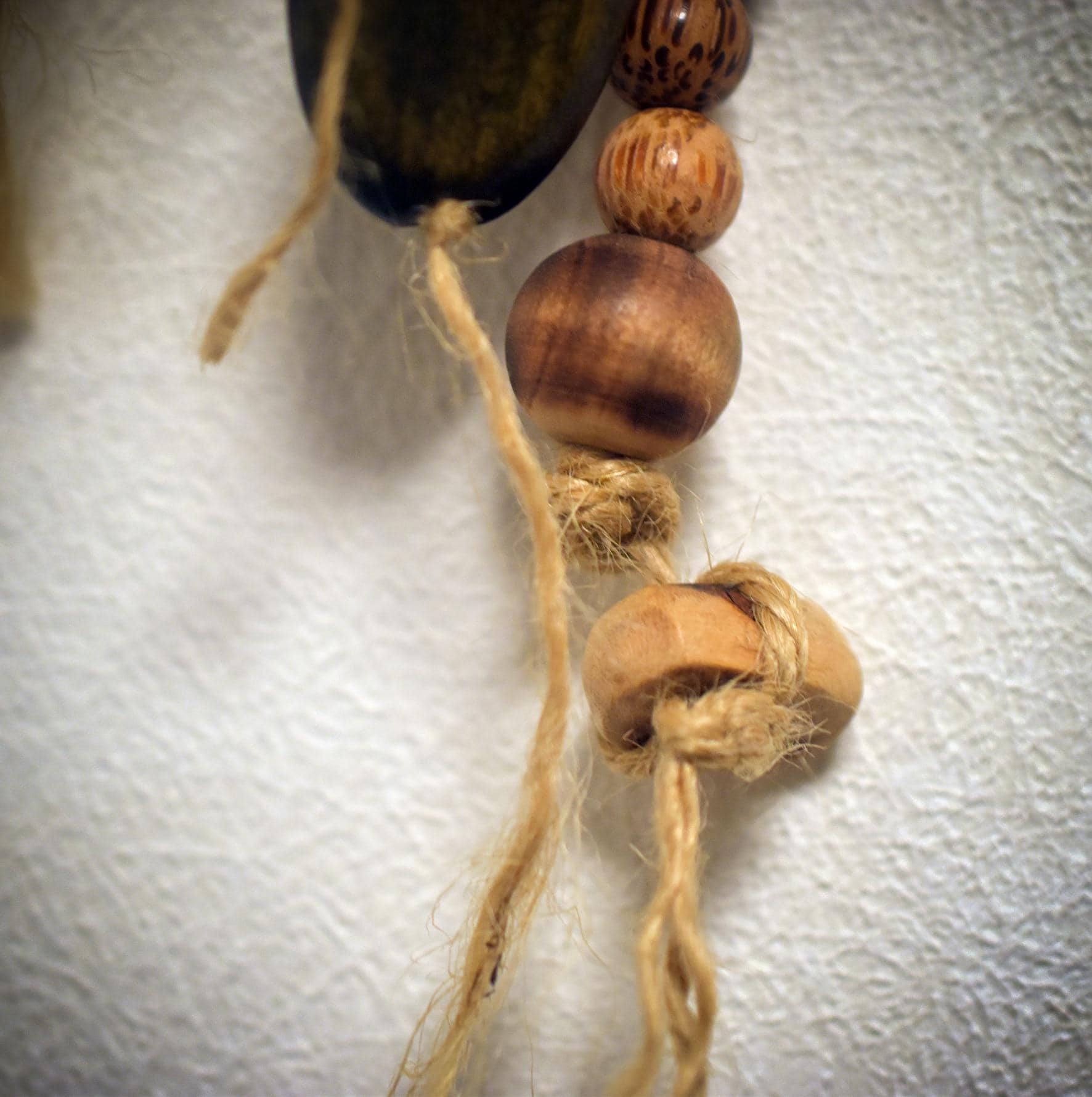 Attached to jute cord hang wooden beads and an amber-like resin bead – small, hand-picked details that bring movement, a sense of nature, and positive energy into your space.