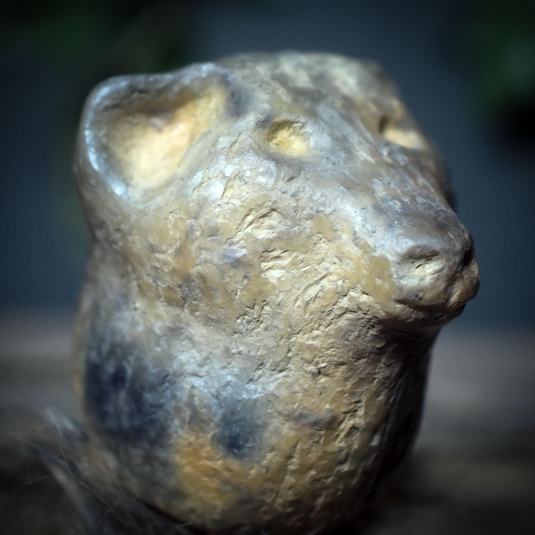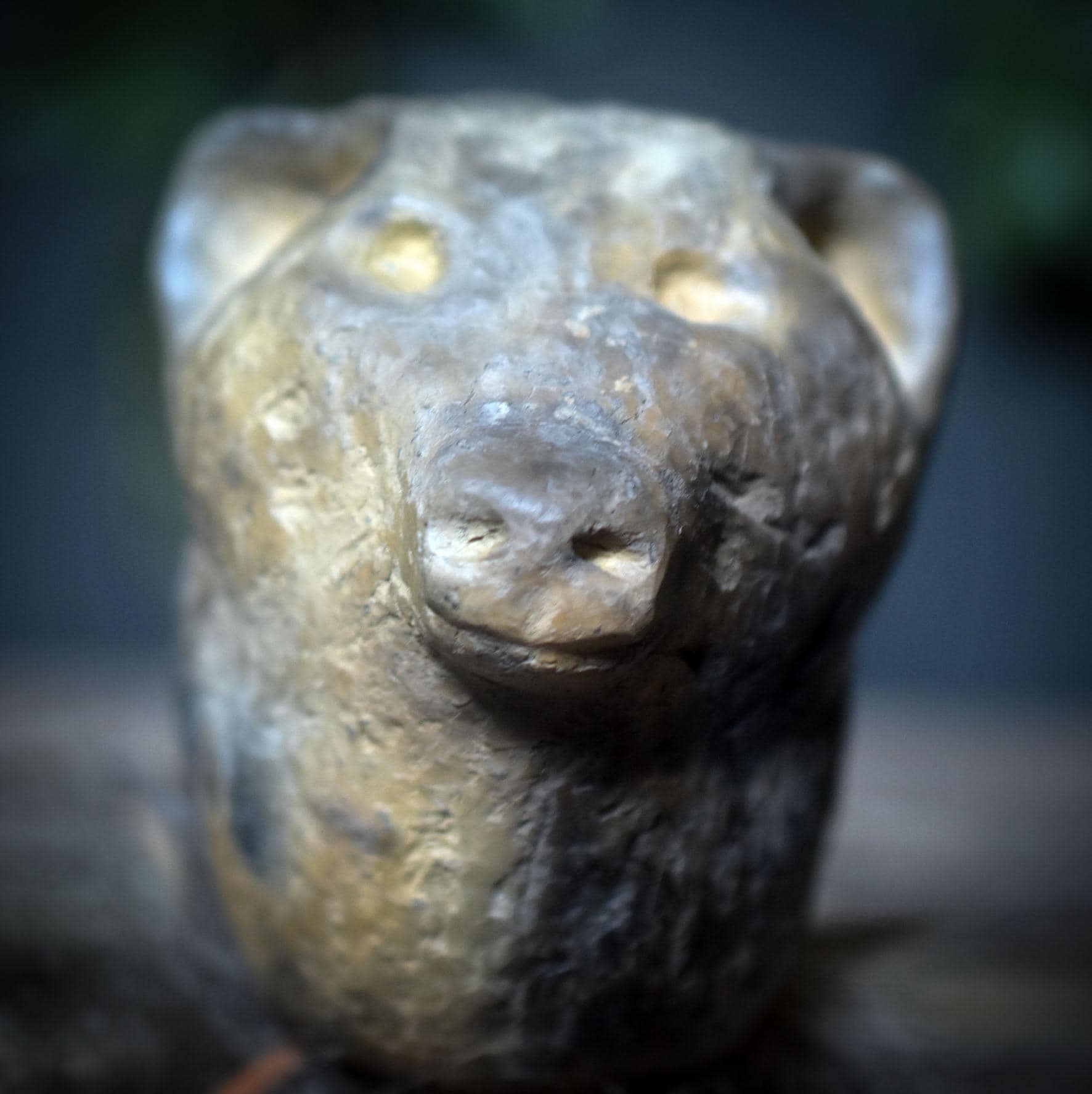 This ritual staff is a powerful companion when you need protection, grounding, and inner strength. The bear's head, made of traditionally fired clay, radiates presence and stability. Attached to a wooden stick, it combines wool, metal antler, hagstone, obsidian, jute, wooden beads, and a bear claw made of camel bone—all materials that bring energy, protection, and strength into your space.