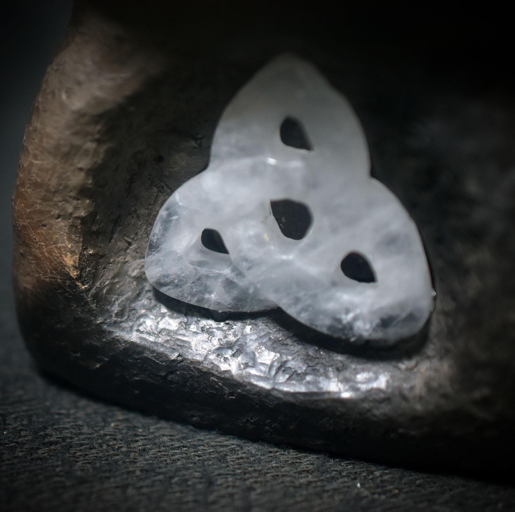 At its center rests a Celtic knot made of genuine rock crystal, embedded deep in the clay – a symbol of the eternal connection between body, mind and soul.