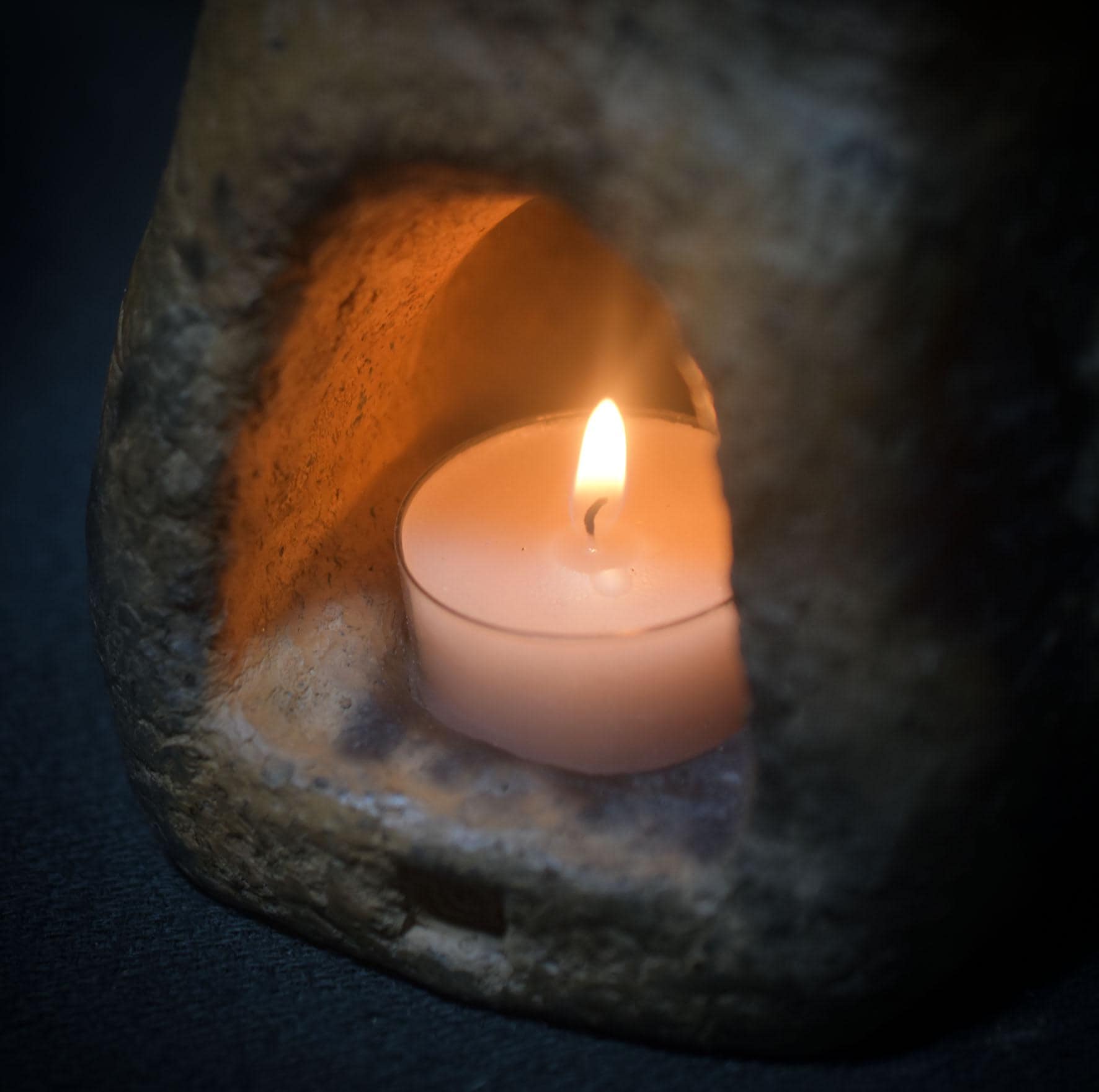 The rising scent of the incense and the warm light of the tea light combine to create a silent ritual – a place where light and shadow dance together.