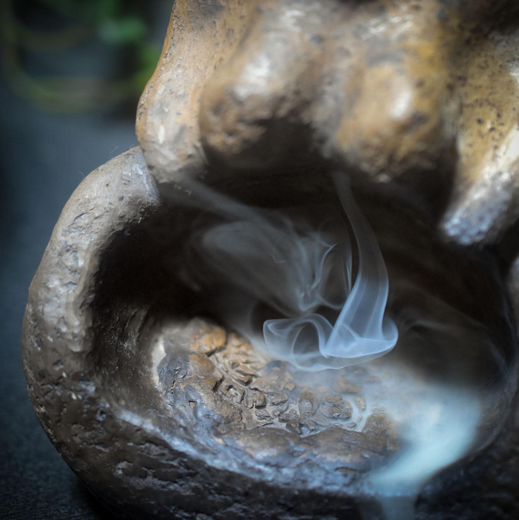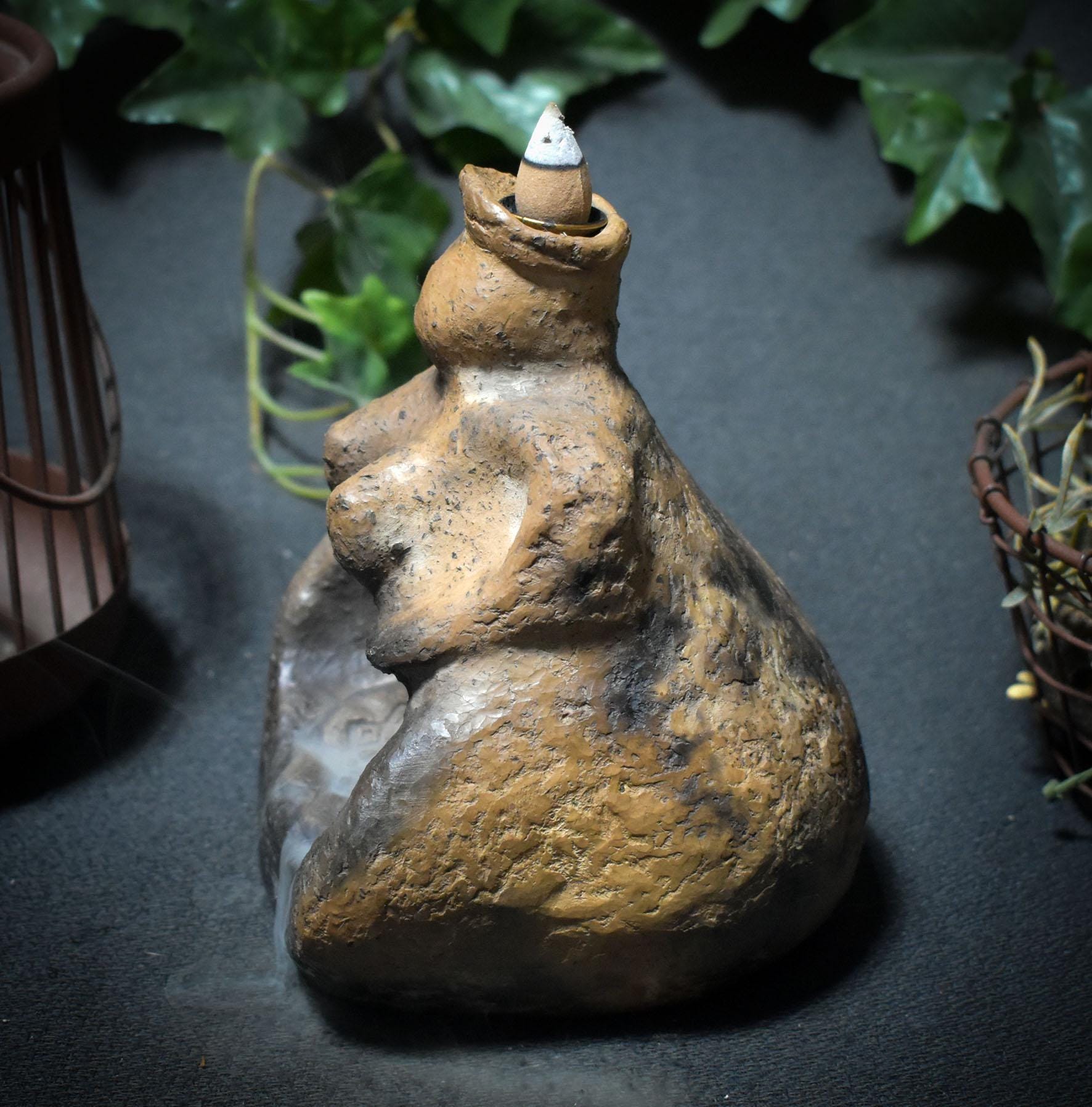 This matriarchal offering bowl combines the form of an archaic goddess with the function of a backflow incense cone holder – a ritual object that embodies earth, smoke and symbolic power.