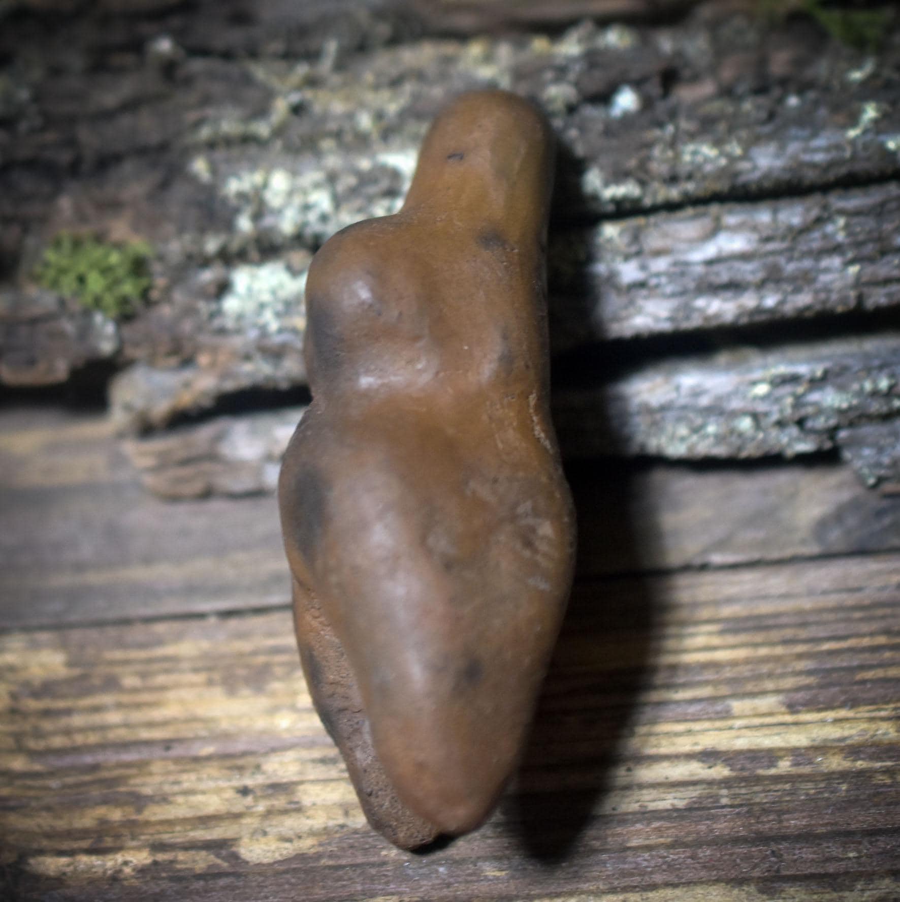This pocket goddess is a small, archaic companion – formed from earth, marked by fire, animated by smoke.