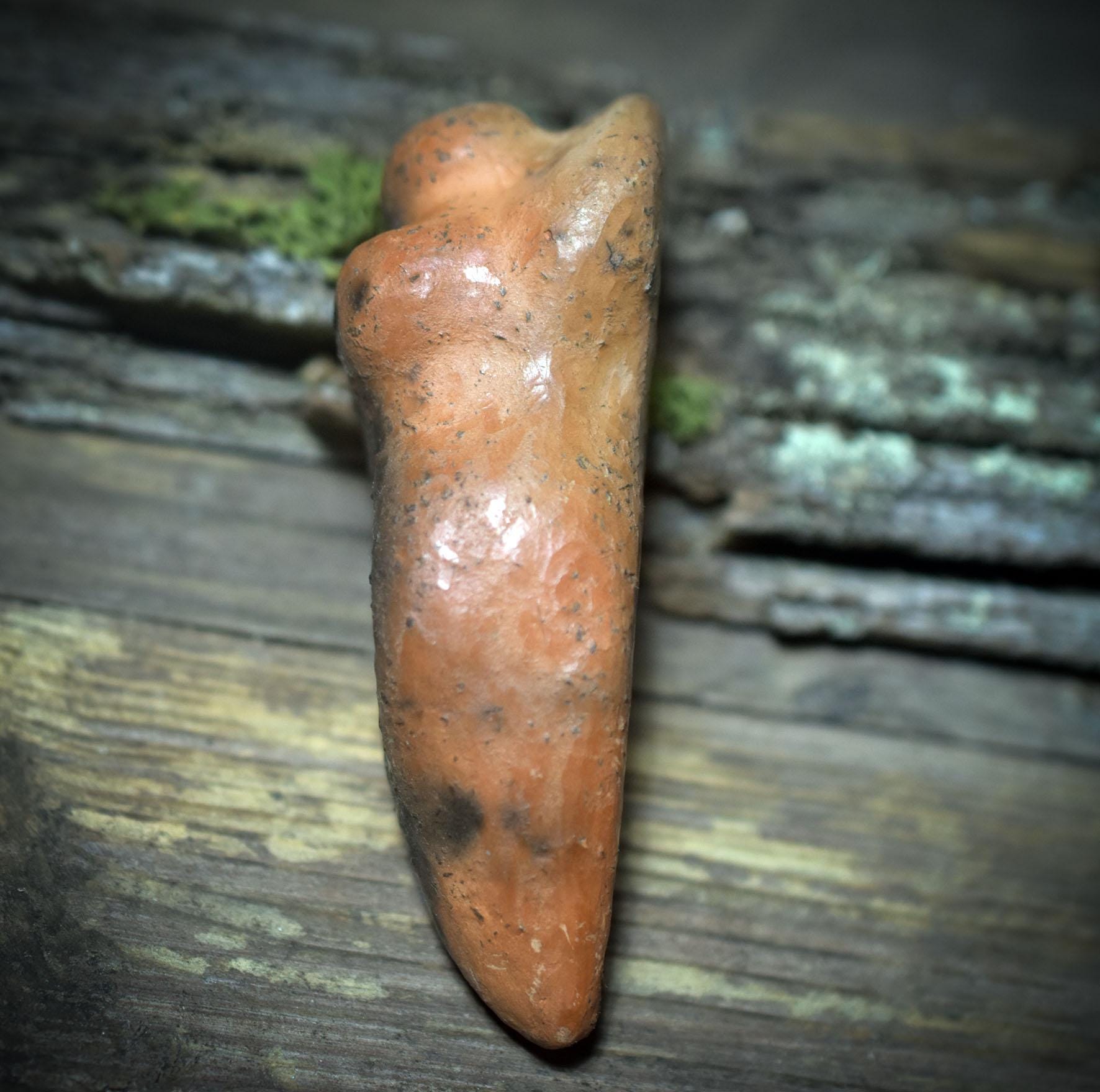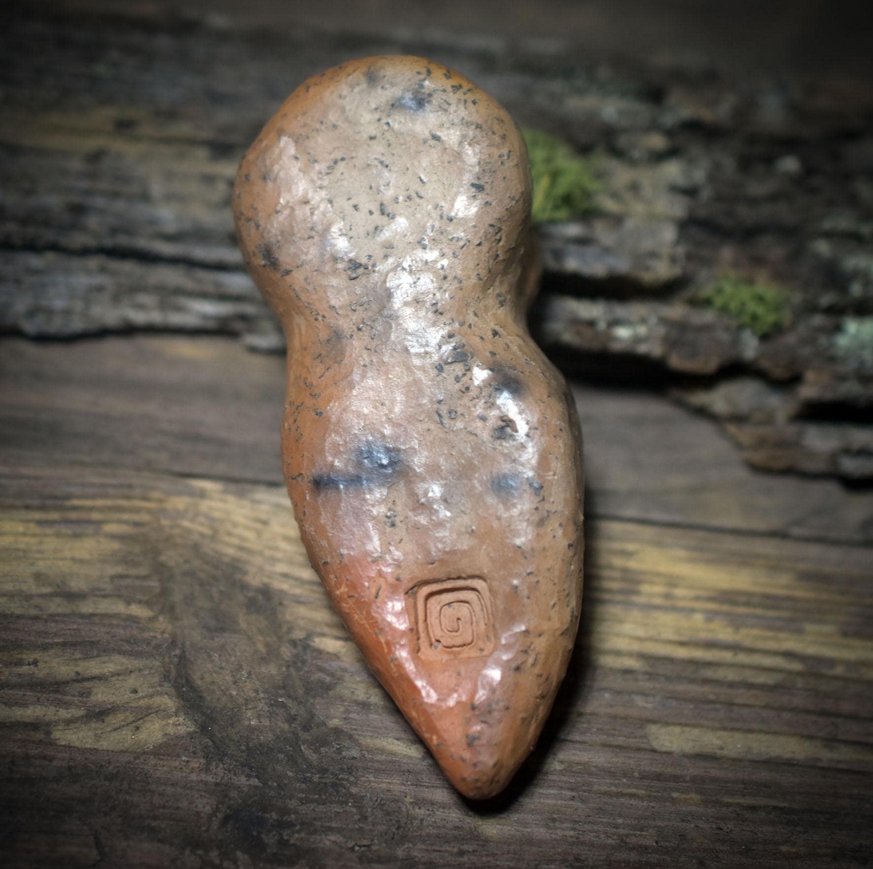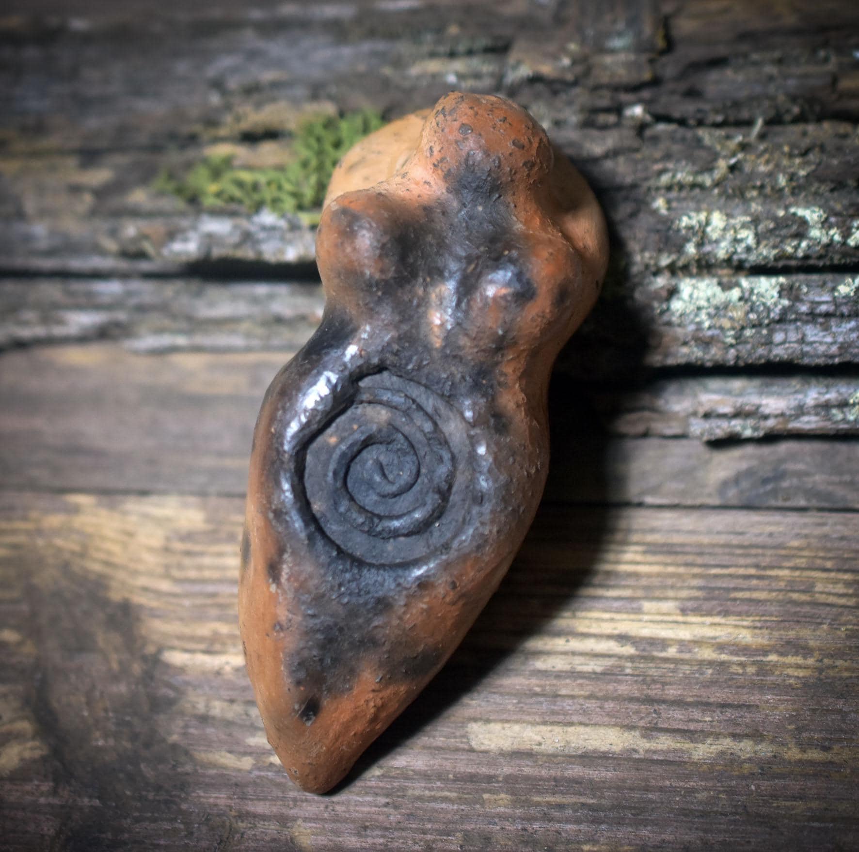This pocket goddess is a small, archaic companion – formed from earth, shaped by fire and smoke.