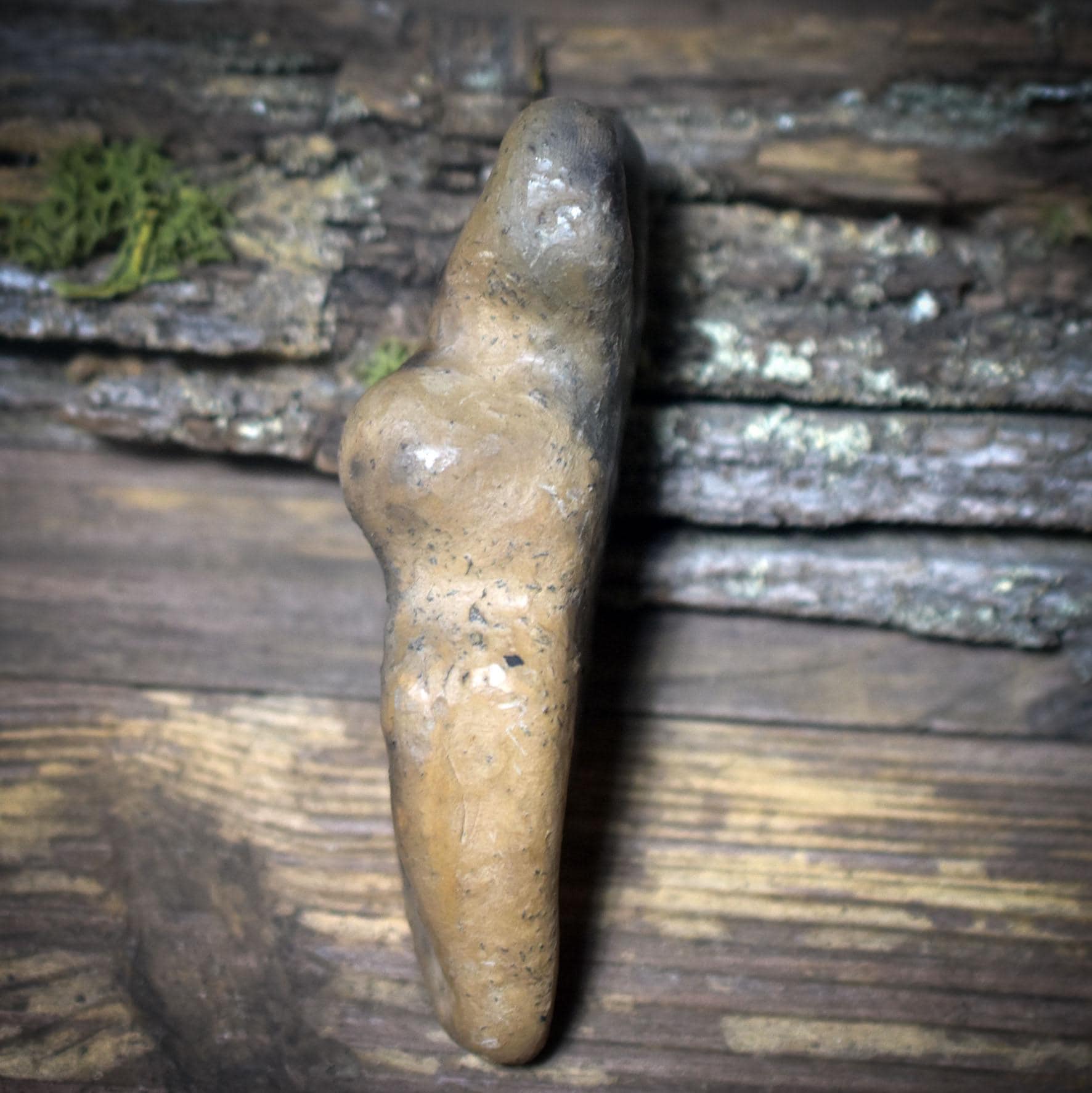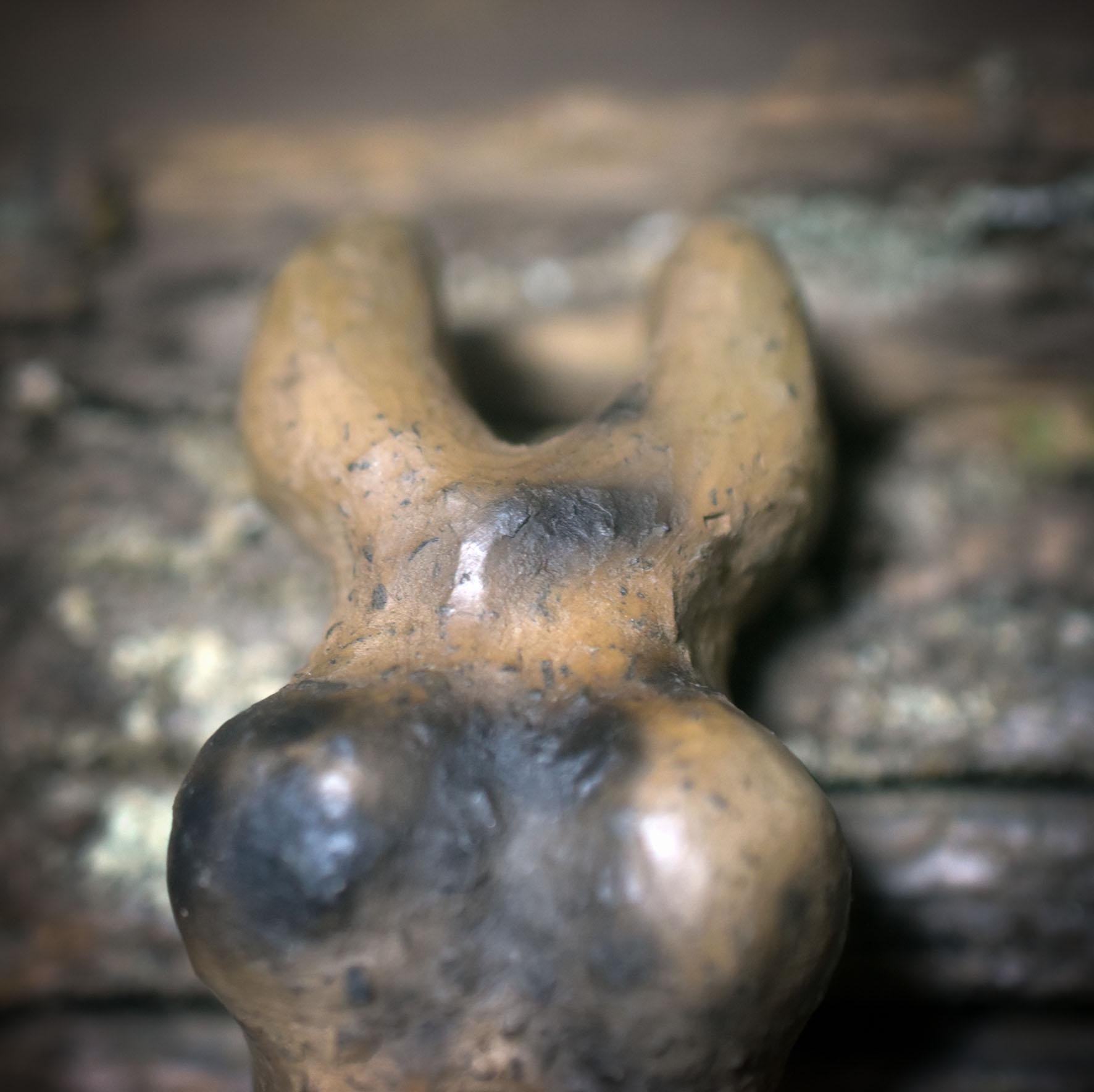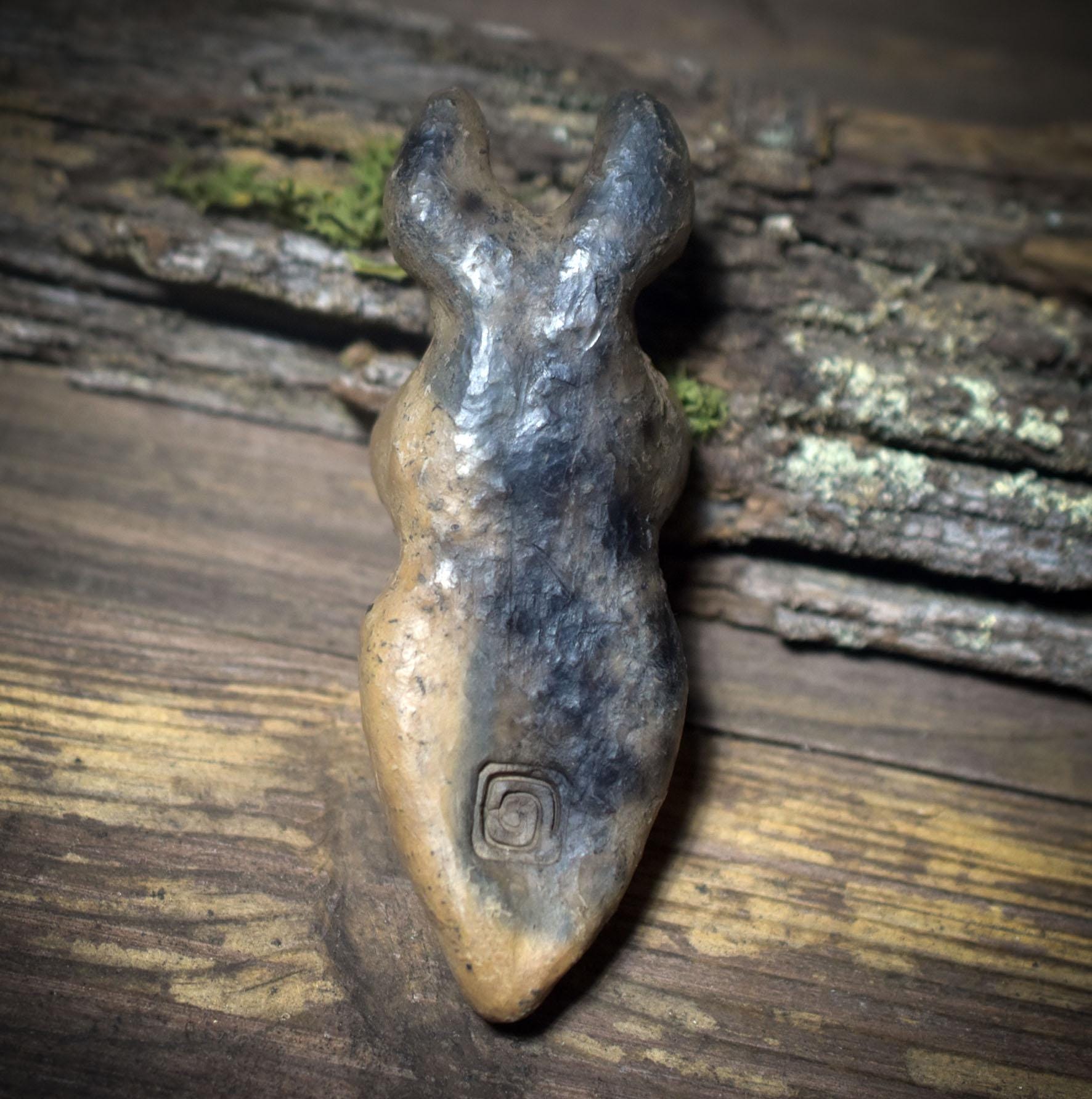 This pocket goddess is an archaic moon goddess, formed from earth, nourished by fire, and marked by smoke.
