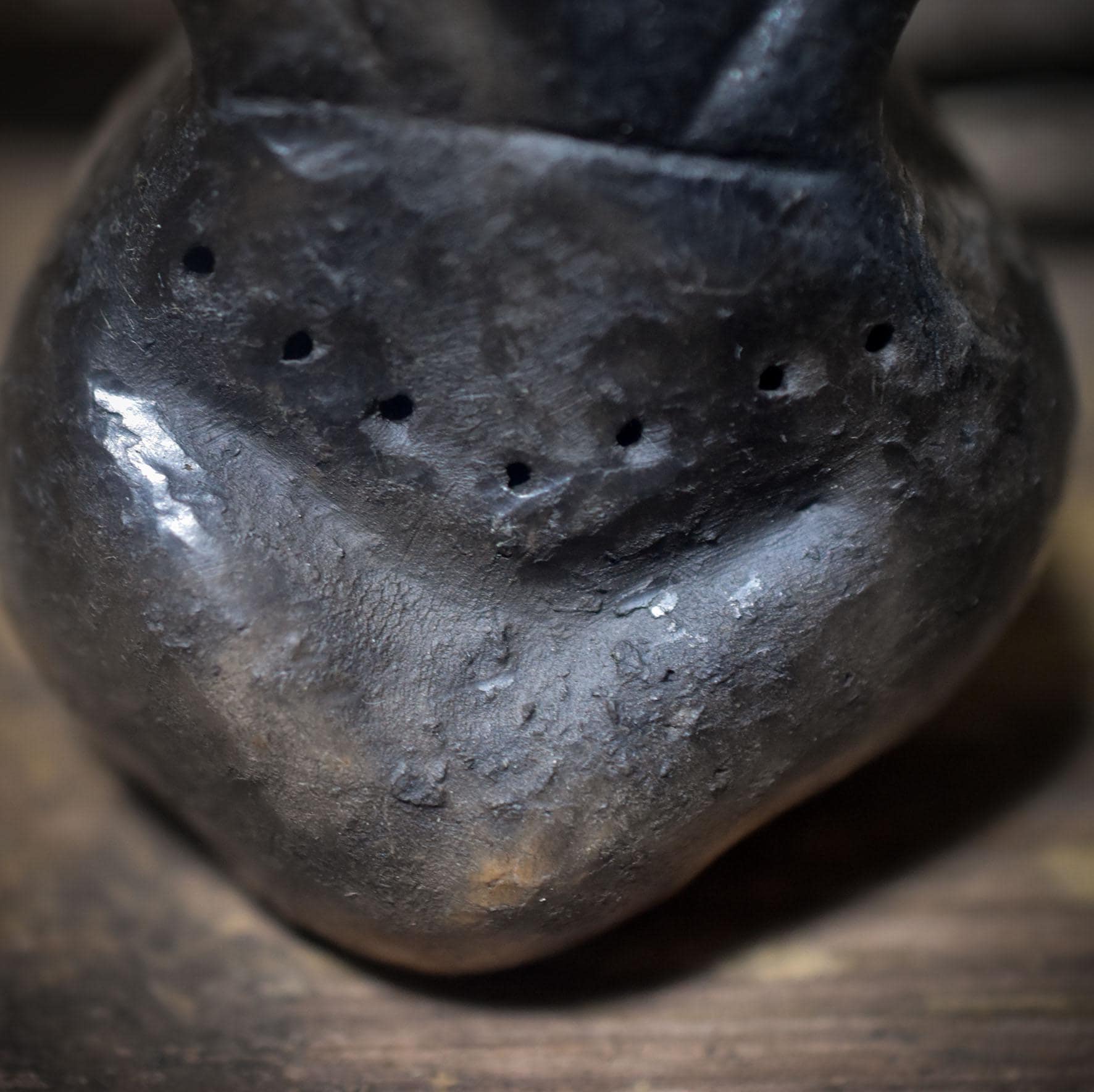 Crafted using traditional smoke-firing techniques, it bears the marks of fire as a sign of transformation – every line, every shade is unique.