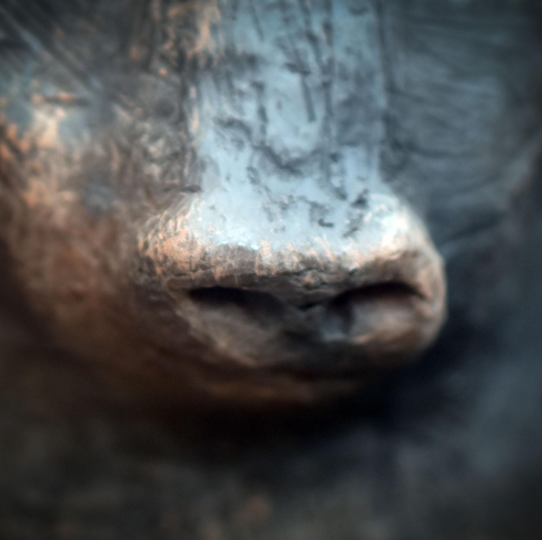 The bear was created from traditionally fired clay and finished using an elaborate smoke-firing technique.