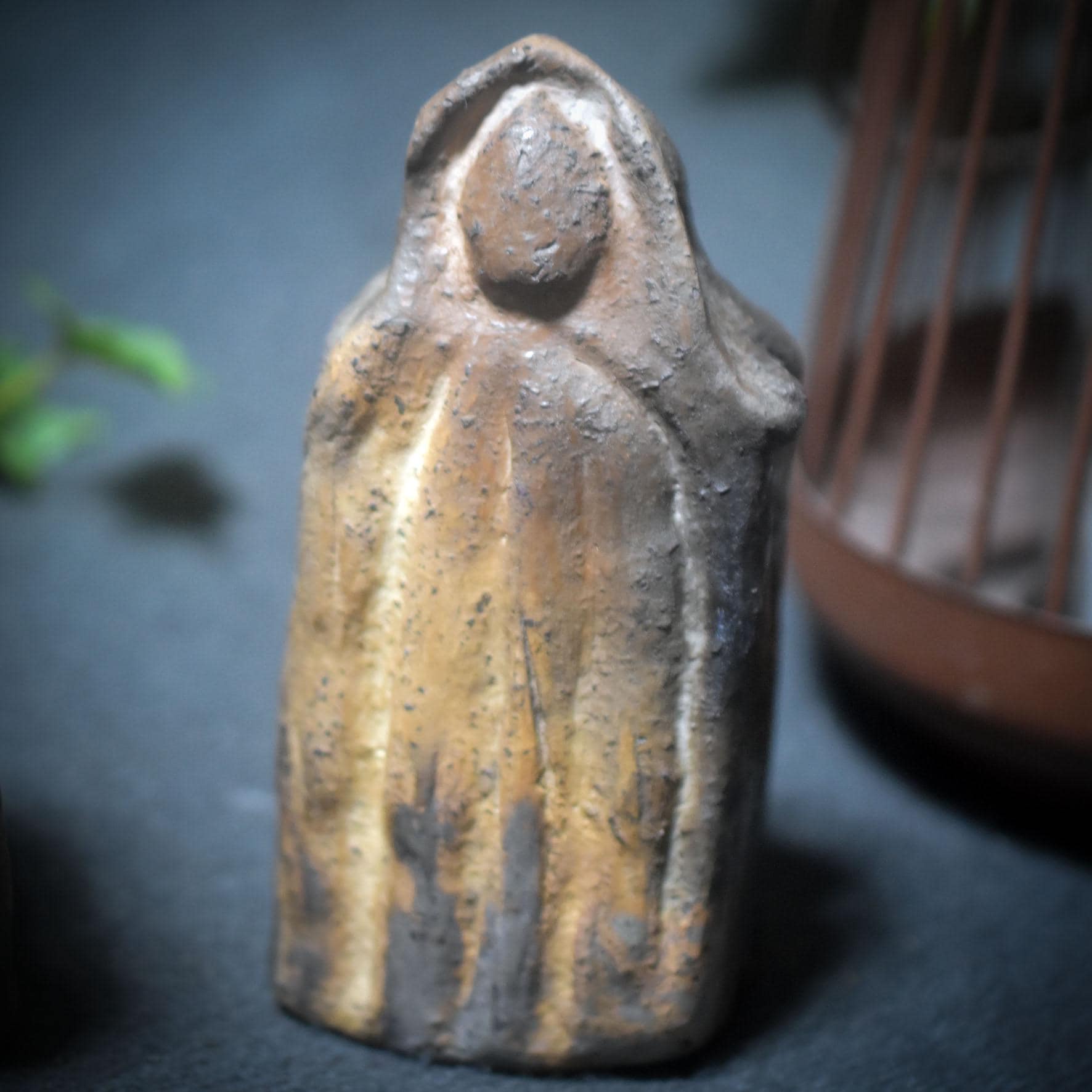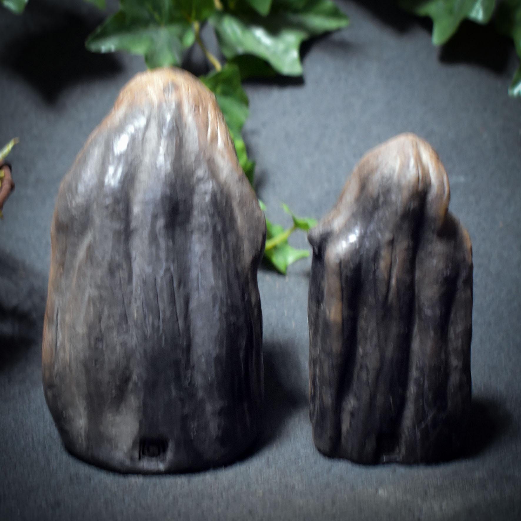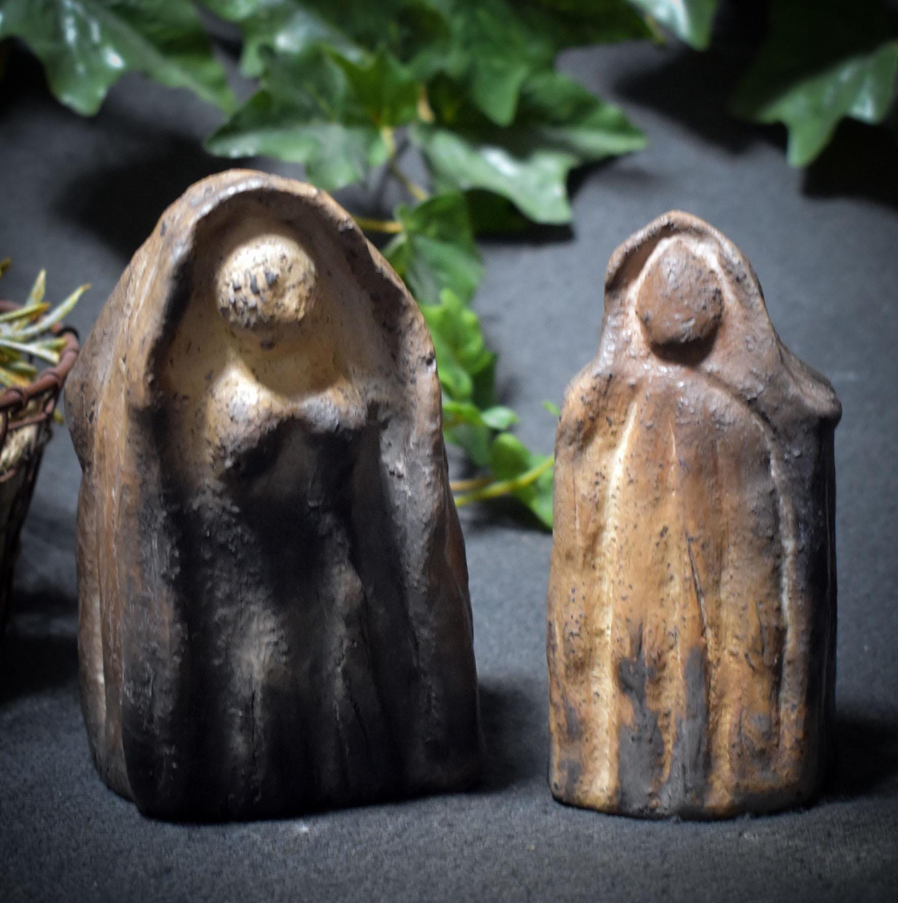 These two handcrafted smoke-fired sculptures embody the powerful union of Maiden and Crone – two aspects of the triple Goddess and symbols of the eternal cycle of life. Each figure is created using traditional smoke-firing techniques, where fire, earth, and intention work together to produce unique patterns and shading.