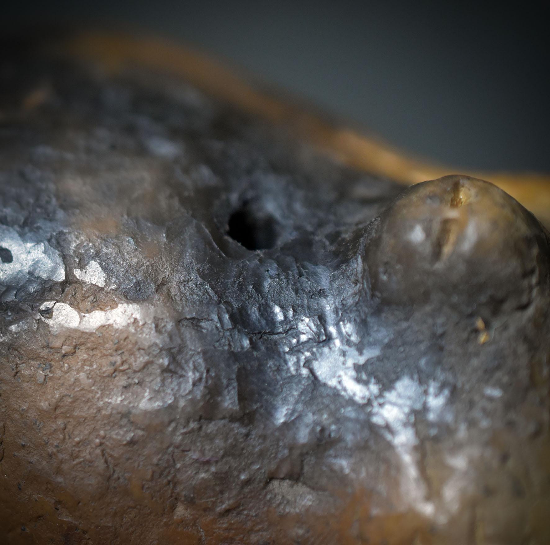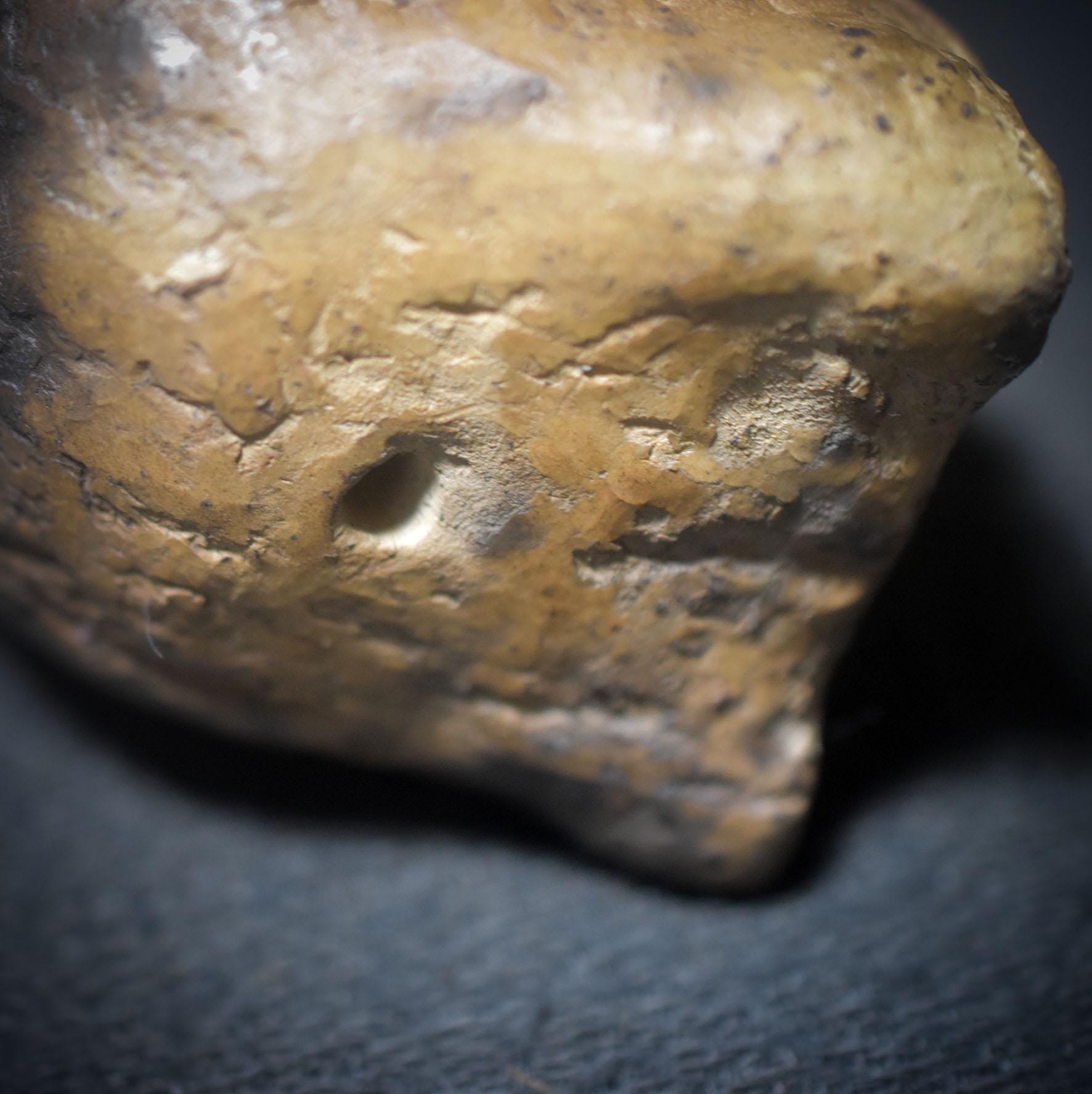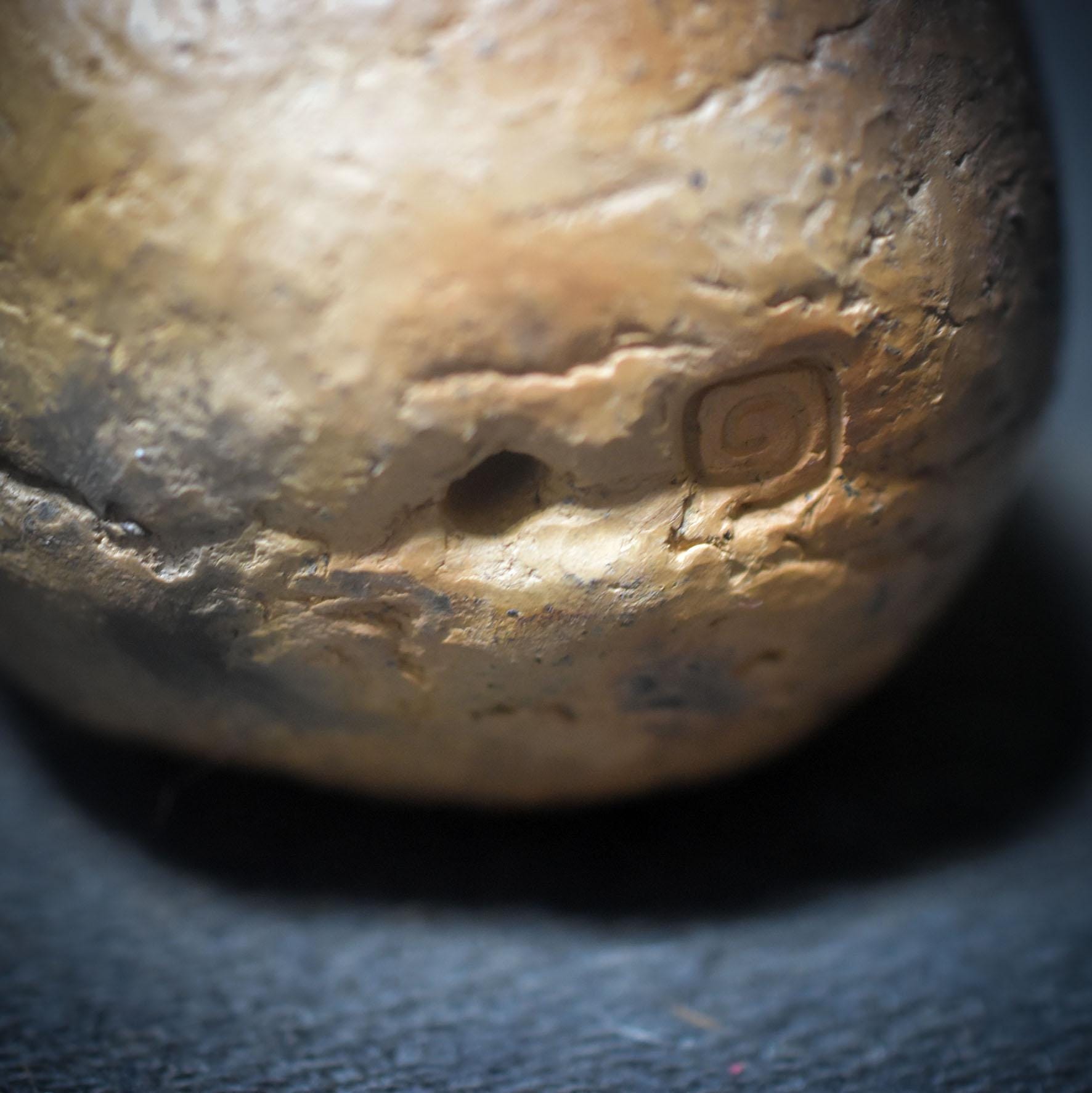 Handcrafted clay rattle using traditional smoke firing techniques – a sound object for rituals and grounding.