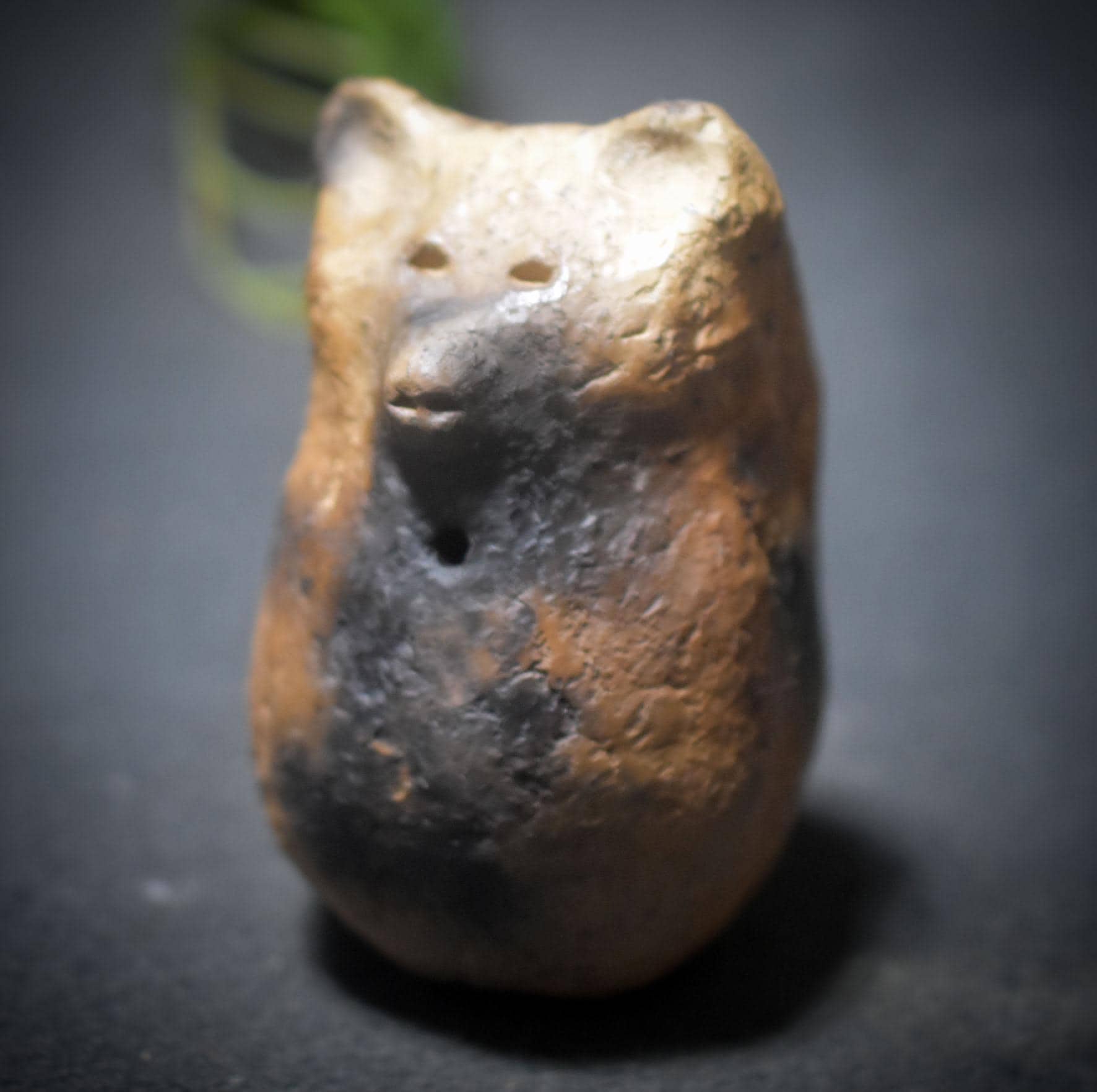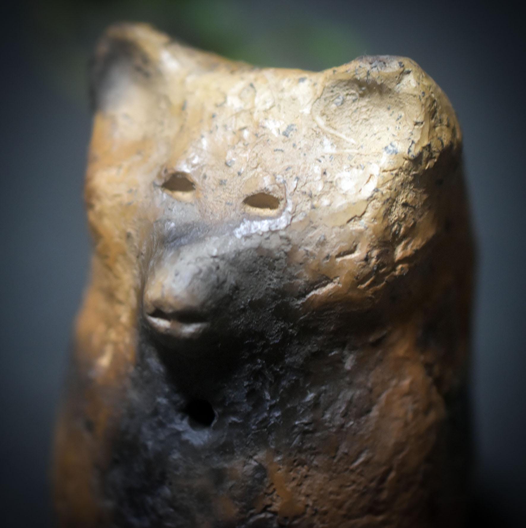 This shamanic bear rattle was carefully handcrafted from clay and finished using traditional smoke firing techniques. The interplay of fire, earth, and intention creates a unique sounding object that radiates a special depth, both visually and energetically.